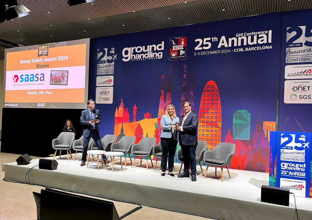 Lima, diciembre de 2024.- Servicios Aeroportuarios Andinos S.A. (SAASA) ganó una de las 3 categorías a la que fue nominada en los Pride of Ground Handling International Awards 2024 desarrollados en Londres, recibió el Primer Puesto en la categoría Ramp Safety, uno de los reconocimientos de mayor trayectoria en la industria de servicios aeroportuarios a nivel global, siendo la única empresa de América Latina en ser nominada y reconocida en esta categoría.
